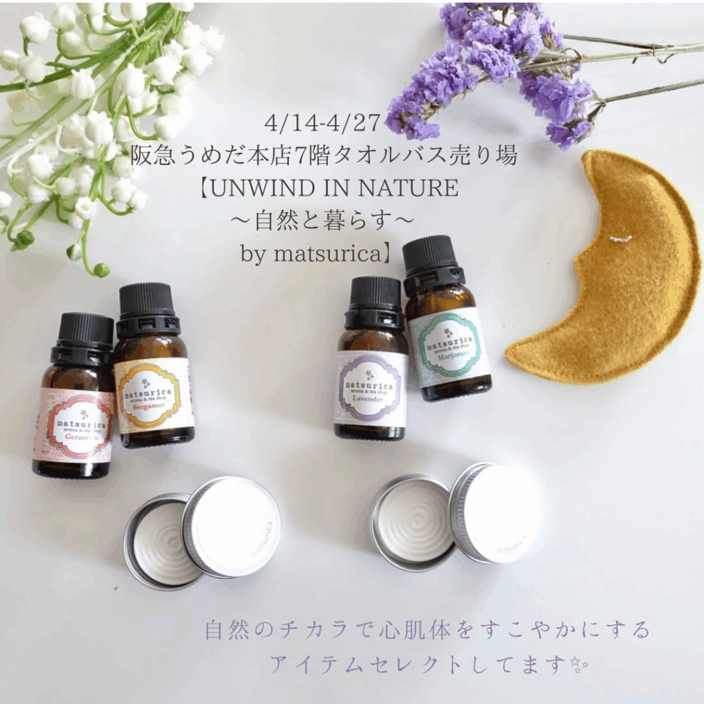 自然の力の詰まったナチュラルコスメ・石鹸・クレイなど3ブランドコーディネートさせていただきました。 4/14〜4/27「UNWIND IN NATURE 〜自然とともに暮らす〜 」阪急うめだ本店7階